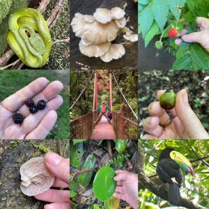Back to the human’s-eye view of the cloud forest, I did get to try a wild species of vining peperomia akin culantro (not a typo, that’s different from cilantro), a bland berry called the roseleaf bramble I later learned was a Himalayan invasive, and a mountain blackberry I spent way too long on iNaturalist and listening this self-proclaimed weird fruit guy trying to pin down the species. Over in the fungal kingdom, I spied species of wood ear, oysters, and reishi. All in all, I uploaded observations of nearly 150 different species of plant, fungi and animal to iNaturalist, and that’s not even counting the few dozen bird calls I logged to Merlin. And really, we barely scratched the surface of this richly diverse land.